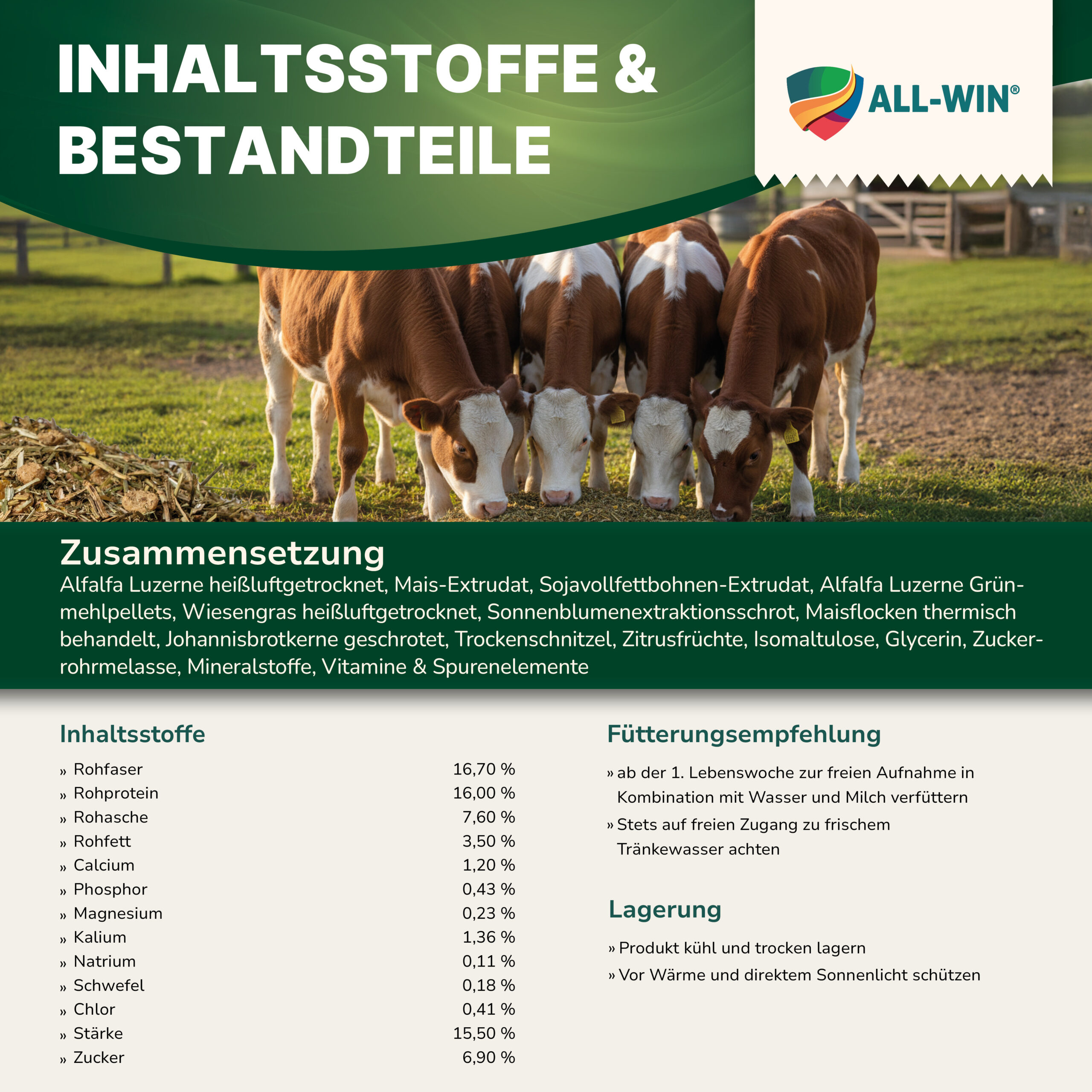 Aus dieser Erfahrung und Verbundenheit entstand unsere Eigenmarke ALL-WIN®. Mit ALL-WIN® haben wir Futtermittel und Fütterungskonzepte entwickelt, die höchsten Qualitätsstandards entsprechen und sich in der Praxis bewähren. Dabei setzen wir auf aktuelle Erkenntnisse und die enge Zusammenarbeit mit Landwirtinnen und Landwirten.